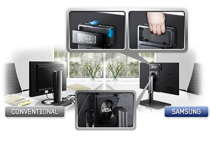 三星智翼CA650定位于商務(wù)辦公人群,它的外觀大方、沉穩(wěn),其底座幾乎則提供了所有調(diào)節(jié)功能,其中包括左右旋轉(zhuǎn)、俯仰角、支持橫豎屏、150mm的高低調(diào)節(jié)范圍,這讓使用者可以根據(jù)需要顯示的內(nèi)容和使用的舒適度情況,任意調(diào)節(jié)顯示器的角度和高度。