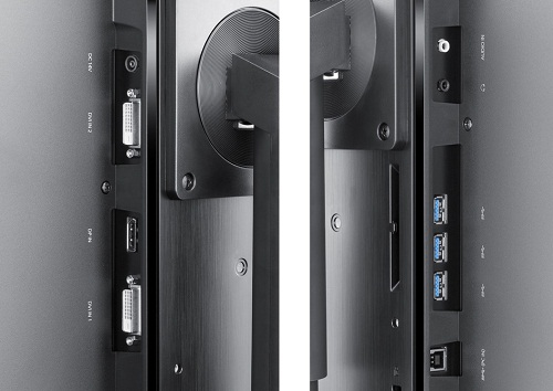 機(jī)身背部左側(cè)分別是兩個DVI-D和一個DisplayPort接口,右側(cè)有3個USB 3.0接口和音頻輸入輸出接口,對于需要經(jīng)常批量傳輸高質(zhì)量圖片、視頻的用戶來說,SA850可以提供更高的傳輸速度,從而可以幫助用戶節(jié)省大量時間來完成工作。在這里還需要補(bǔ)充說明的是, 智翼SA850的分辨率高達(dá)2560×1440,所以使用DVI接口時必須采用類似3D顯示器那樣的雙通道DVI(Dual-liink DVI)線方能行,普通的DVI線是無法支持最大分辨率的。