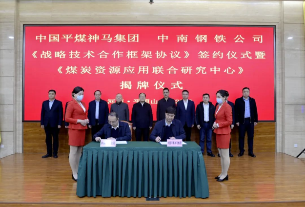 2月9日上午,中國平煤神馬集團與中南鋼鐵公司《戰(zhàn)略技術合作框架協(xié)議》簽約儀式暨“煤炭資源應用聯(lián)合研究中心”揭牌儀式在集團會議中心舉行。集團總經理杜波,中南鋼鐵公司總裁、黨委副書記吳琨宗出席儀式,并就深化合作親切交流。